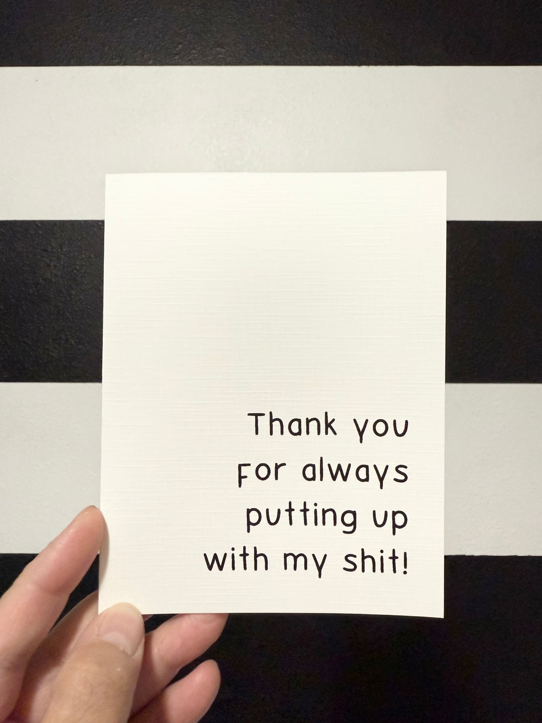 "Thank you for always putting up with my shit!" Quoted. Greeting Card